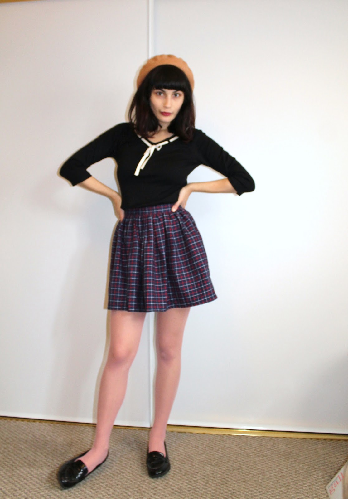 shirt and hat- thrifted; tights and skirt- american apparel; shoes-target.